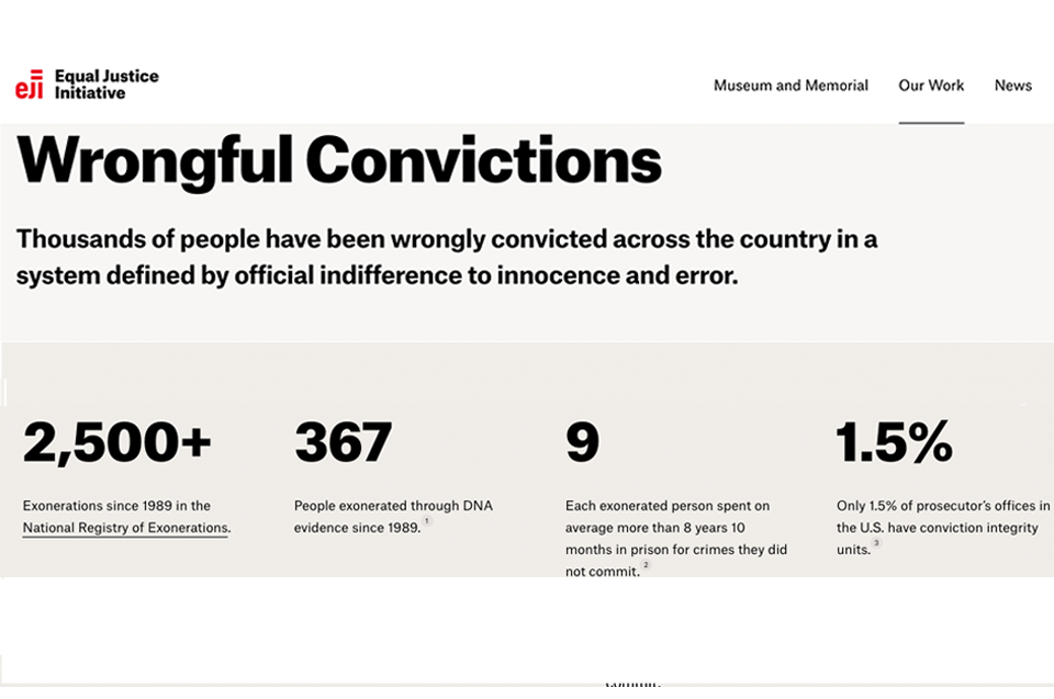 Due to EJI’s efforts, over 367 people who were convicted have been exonerated due to DNA evidence since 1989, yet only 1.5% of Prosecutors offices dedicate any resources to conviction integrity.